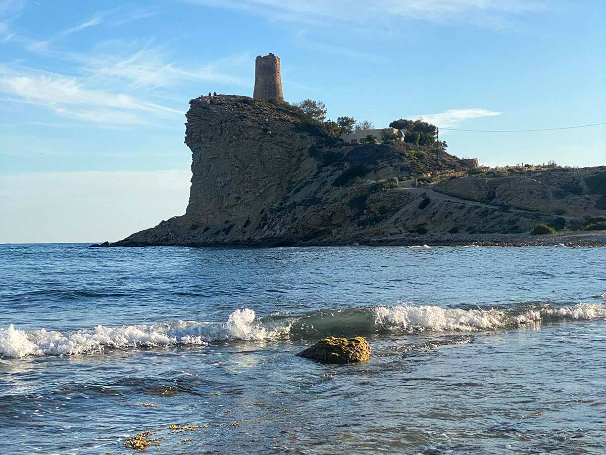 Justo al lado de la playa, en un pequeño promontorio, podemos subir a contemplar las vistas a la Torre vigía del Xarco.